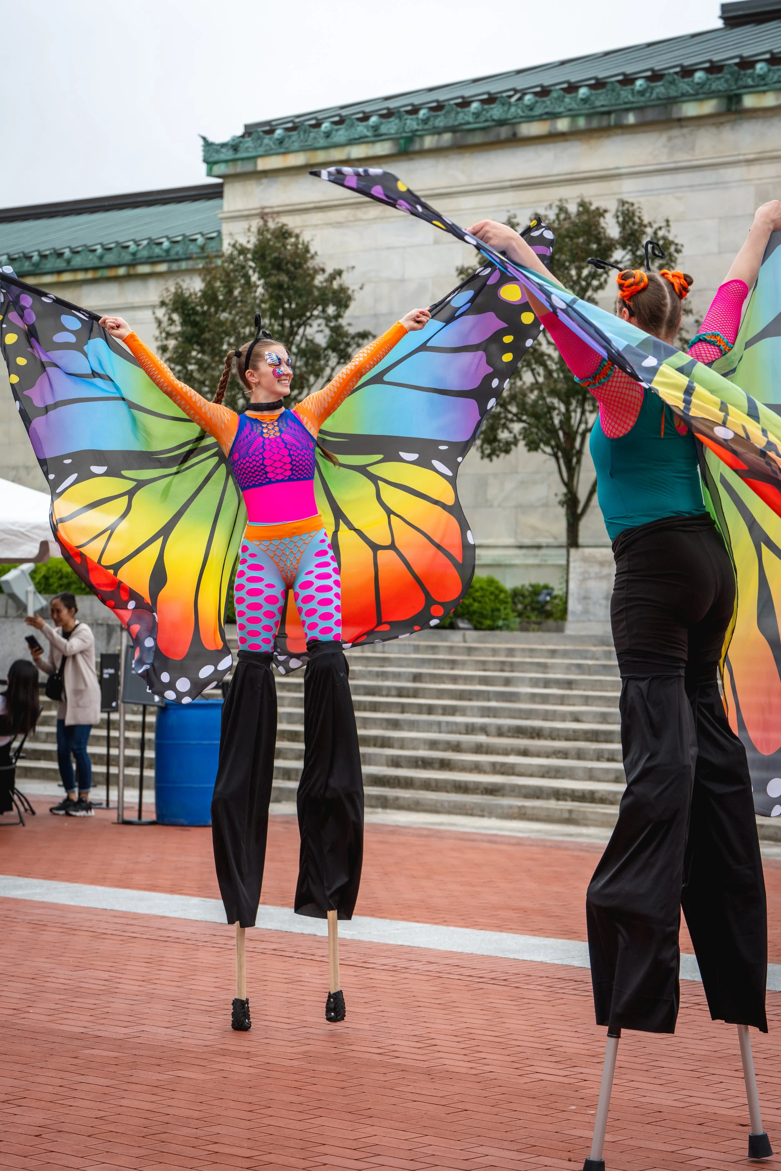 All BEVC stilters wear a minimum of 30-inch stilts, taking your event to skyrocketing heights!